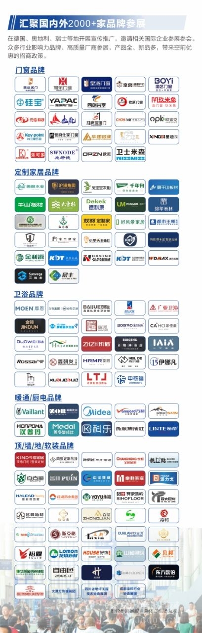 同时,门窗、定制家居、卫浴厨电、顶/墙/地材/软拆、暖通、舒服家居等2000+行业品牌,