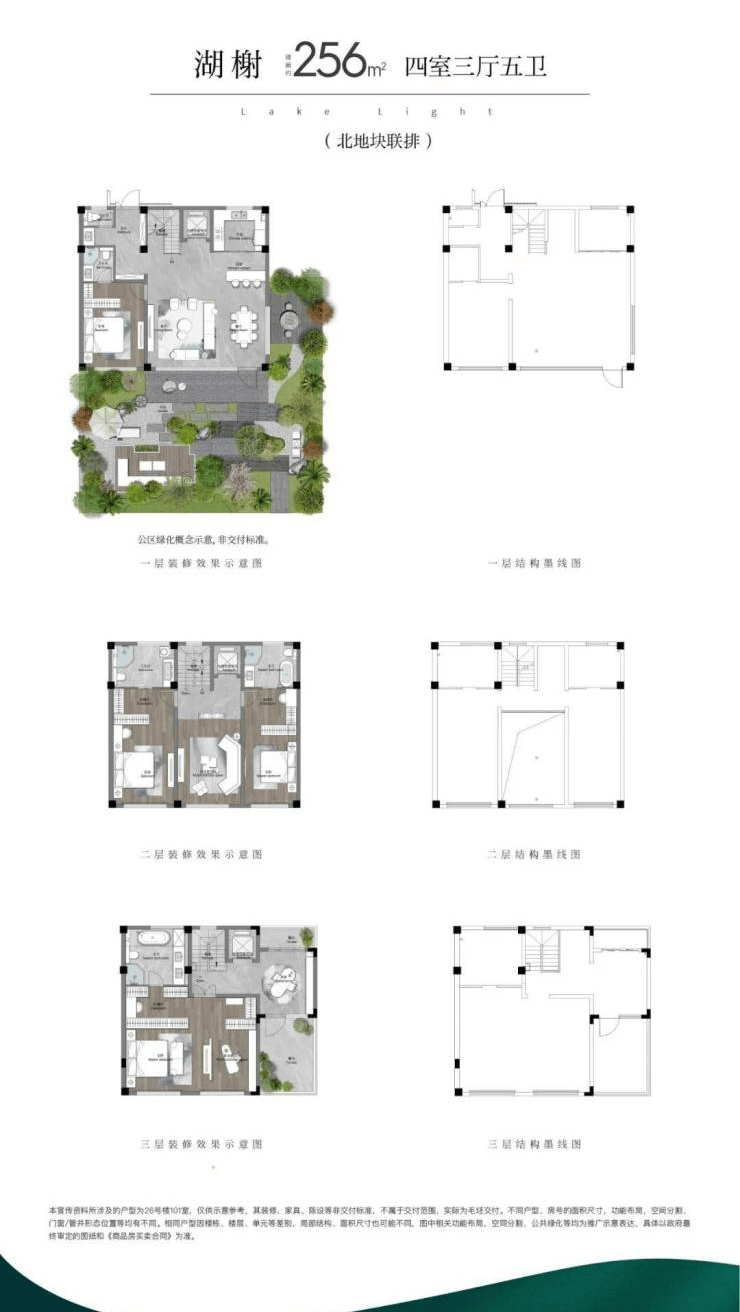 南地块联排256平:四室三厅五卫,(消息来历:苏南房地产察看、苏大楼)
